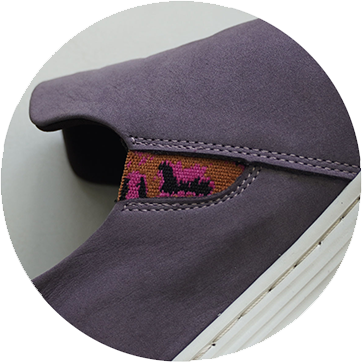 かかとパットは、箔加工の仔山羊革で森林の輝きをイメージ